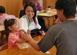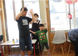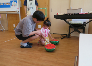 8月2日(土)、未就学さん対象の夏祭りを実施しました。普段の活動通り、お集まりで手遊び歌をお父さん・お母さん達と行った後は、スタッフが作ったスイカでスイカ割り!棒でスイカを真剣に割る姿に、お母さんたちはスマホを構えてベストショットを狙っていました♪屋台は、かき氷、フランクフルト、ポップコーン、ヨーヨー釣り、ゲームコーナー(ワニワニパニック、ボール投げ)。家族みんなで回る屋台は、子どもたちも嬉しかったのか、いつもと違う表情で楽しんでいました(*^^*)最後は、みんなでダンス!たくさんの未就学さんが集まる貴重な機会で、私達スタッフもほっこりした一日でした♪