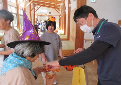 10月23日(木)にハロウィンパーティーを開催しました。まず自分で選んだ衣装に仮装しました。どこかに隠れている施設長、サビ管、看護師を探して素敵なおばけたちが施設内を大捜索! 無事に皆さんお菓子を貰うことができました!(^^)! 終始、沢山の笑顔と笑い声に包まれ楽しい時間となりました。