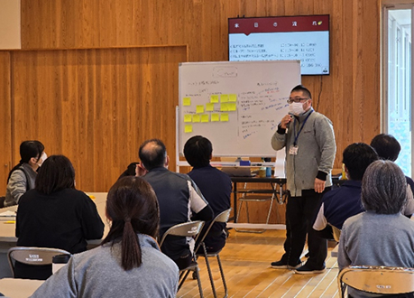 11月26日(水)、東洋学園では児童部、成人部職員合同で虐待防止研修会を開催しました。講師に相談支援双葉事業所林さん、木下さんに来ていただきました。 テーマは「虐待の目を積むために話し合い、行動しよう」!まずは、虐待発生要因は何か、現状を考え、分析。分析から改善策までグループワークで話し合いを行いました。 明日からできること等、各グループで発表し全体共有を行いました。 みんなで話し合い、共有、明日からやってみよう!と、有意義な時間となりました。