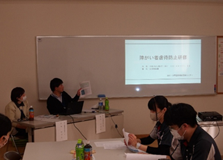 12月8日(月)東洋健生園において田村・小野基幹相談支援センターの根本氏と門馬氏に講師として来ていただき「障害者虐待防止研修会」を開催しました。研修では事例を通してのグループワークや、日々の支援の振り返り等を行いました。活発な意見交換がなされて大変有意義な研修会となりました。「小さな出来事」を見逃すことのないよう、今後も利用者さんに寄り添った支援を意識していきたいと思います。