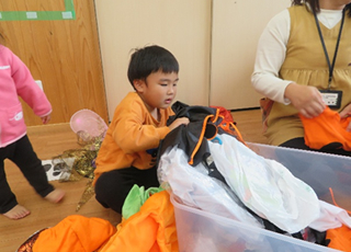 10月最後の1週間はハロウィンパーティーを行いました。たくさんの衣装の中から、好きな衣装を選びました。1着だけでなく、何回も色んな衣装に着替えている子供たちが多くいました!お気に入りの衣装で、みんなでハイチーズ!お化けや妖精などになりきってポーズする姿が印象的でした♪