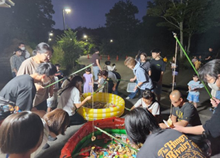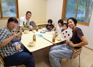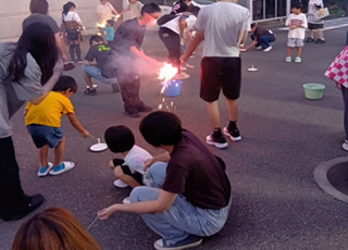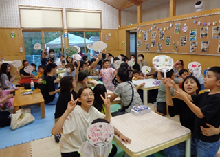 9月6日、「ミニ花火大会&カレーパーティー」を行いました。 今年度は22家族63名の皆さんに参加していただき、うちわ作りやカレーパーティー、お菓子釣り、花火を盛大に行い、楽しい時間を過ごしました\(^o^)/ 昨年度より花火の数を増やし、夜空に花火が打ちあがるたびに「オォ~!!」という歓声☆彡 とても楽しい時間を過ごしました(^_^)