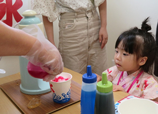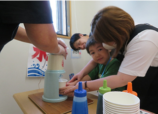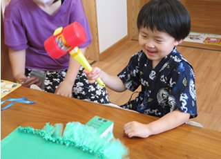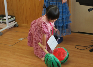 8月2日(土)、未就学さん対象の夏祭りを実施しました。普段の活動通り、お集まりで手遊び歌をお父さん・お母さん達と行った後は、スタッフが作ったスイカでスイカ割り!棒でスイカを真剣に割る姿に、お母さんたちはスマホを構えてベストショットを狙っていました♪屋台は、かき氷、フランクフルト、ポップコーン、ヨーヨー釣り、ゲームコーナー(ワニワニパニック、ボール投げ)。家族みんなで回る屋台は、子どもたちも嬉しかったのか、いつもと違う表情で楽しんでいました(*^^*)最後は、みんなでダンス!たくさんの未就学さんが集まる貴重な機会で、私達スタッフもほっこりした一日でした♪