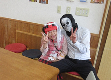 10月23日(木)にハロウィンパーティーを開催しました。まず自分で選んだ衣装に仮装しました。どこかに隠れている施設長、サビ管、看護師を探して素敵なおばけたちが施設内を大捜索! 無事に皆さんお菓子を貰うことができました!(^^)! 終始、沢山の笑顔と笑い声に包まれ楽しい時間となりました。