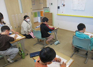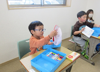 この日は第1回目ということで「学校の雰囲気を体験する」「チャイムに合わせてごあいさつ」を目標にして模擬授業に参加してもらいました。「せいかつか」はお道具箱の使い方。「こくご」「さんすう」のワークも自信をもって取り組めており「次はもっと難しくしていいよ」と頼もしい意見も・・・2月まで月に一度開催予定ですので次回もお楽しみに・・・