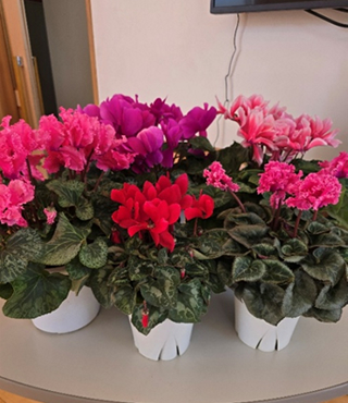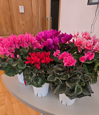 今年もクリスマスプレゼントとして、たくさんのシクラメンをいただき、玄関がとても華やかになりました。ありがとうございました。