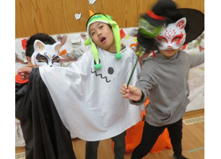 10月最後の1週間はハロウィンパーティーを行いました。たくさんの衣装の中から、好きな衣装を選びました。1着だけでなく、何回も色んな衣装に着替えている子供たちが多くいました!お気に入りの衣装で、みんなでハイチーズ!お化けや妖精などになりきってポーズする姿が印象的でした♪