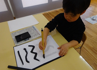1月の集団活動では、未就学児と学童を対象に書字訓練をしました。今年の干支である「うま」という文字を書いてみたり、記号や好きな単語なども書いてそれぞれの個性溢れる作品が完成しました。書道をやるのは初めて!という子どももおり、書道の面白さや奥深さをみんなで体験しました。保護者の方にもたくさんほめていただき、子どもたちも嬉しそうでした(*^^*)