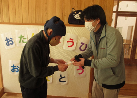3月29日(日)に自治会活動の一環となる誕生日会を行いました。誕生者には担当職員よりメッセージカードが手渡され、メッセージを読んでもらい嬉しそうな表情の誕生者に職員も笑顔になりました。今回のケーキは皆さんからのリクエストが多かったお星さまケーキになり、おいしそうに頬張っていました。来年度もさらに楽しい活動を自治会で計画したいと思います。