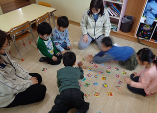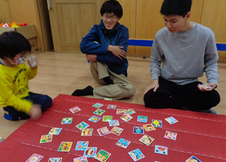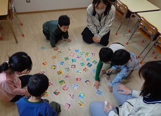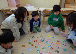 1月の2週目、お正月の遊びとして親しまれているカードゲーム、かるたをみんなで楽しみました。読み札の職員の顔をじっと見つめる子もいましたが、読まれた内容に合う絵札を探し、元気にカードを叩いて取っていました(^^) 今年も元気いっぱいに年明けスタートしたキララです☆