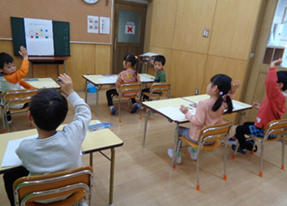 11月から1月までの期間、年長さんを対象としたプレスクールを計3回実施しました。今年の年長さんは緊張よりワクワク、楽しみの気持ちが強く、プレスクールの時はとても元気に発言してくれました(^^)! 算数と国語の模擬授業、掃除や体育の体験、着替えの練習など盛りだくさん。毎回楽しみに参加してくれてありがとう☆